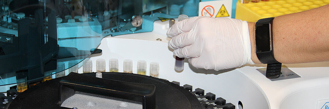 Die Hinterland-Klinik verfügt über eine moderne und umfangreiche Diagnostik. Bei uns im Haus gibt es ein eigenes Labor, das schnell und zuverlässig Untersuchungsergebnisse liefert – zum Beispiel zu Leber-, Herz- und Fettwerten, zu Elektrolyten, Bauchspeicheldrüsenwerten sowie Eiweiß- und Rheumawerten, zu Blutzuckertests und Nierenwerten (Creatinin-Clearance).